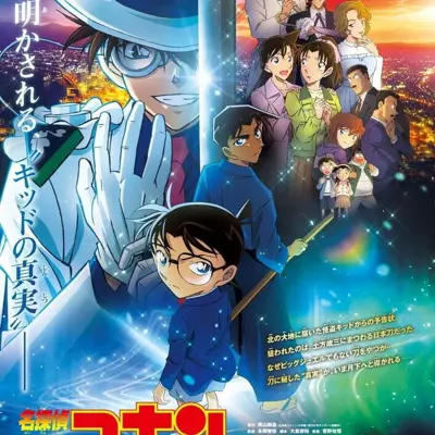 刀に秘した"真実"が、闇夜を切り裂き、 いま月下へと導かれる── 北海道・函館にある斧江財閥の収蔵庫に、怪盗キッドからの予告状が届いた。今回キッドが狙うのは、 幕末を生きた新選組副長・土方歳三にまつわる日本刀だという。 ビッグジュエルを追い求めるキッドが、なぜ刀を狙うのか…? 一方、西の名探偵・服部平次とコナン達も、函館で開催される剣道大会の為に現地を訪れており、 犯行予告当日、平次がキッドの変装を見事見破り追い詰めるが…!? 時を同じして、胸に十文字の切り傷がつけられた遺体が函館倉庫街で見つかる。 捜査線上に浮かび上がったのは、"死の商人"と呼ばれ、アジア一帯で武器商人として活動する日系アメリカ人の男。 彼は戦時中の軍需産業に深く関わっていた斧江家初代当主が函館のどこかに隠したとされるお宝を探していた。 それは、当時、日本の敗色濃厚だった戦況を一変させるほどの強力な兵器だという噂も… そして、そのお宝とキッドが狙う刀はどうやら関係があるようで、刀を狙うキッドに対し、 謎の"剣士"の影が迫り… 天下分け目の お宝争奪バトルミステリー ここに開幕──!
